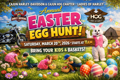 Join us on March 28th for our Annual Easter Egg Hunt for the kids at Cajun Harley-Davidson!