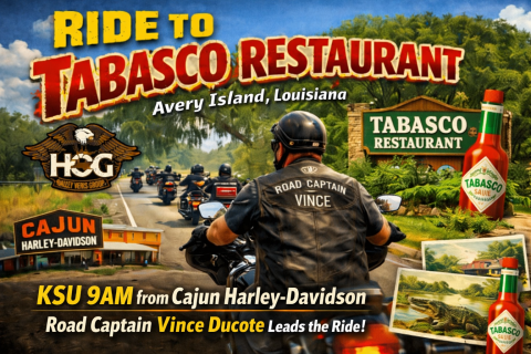 Join Vince Ducote on a rode south to Avery Island. KSU 9AM from Cajun Harley Davidson